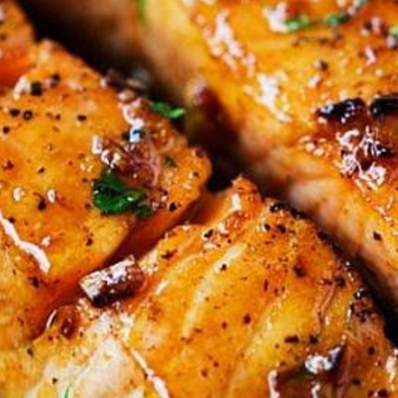 Cajun seared salmon drizzled with hot melted butter